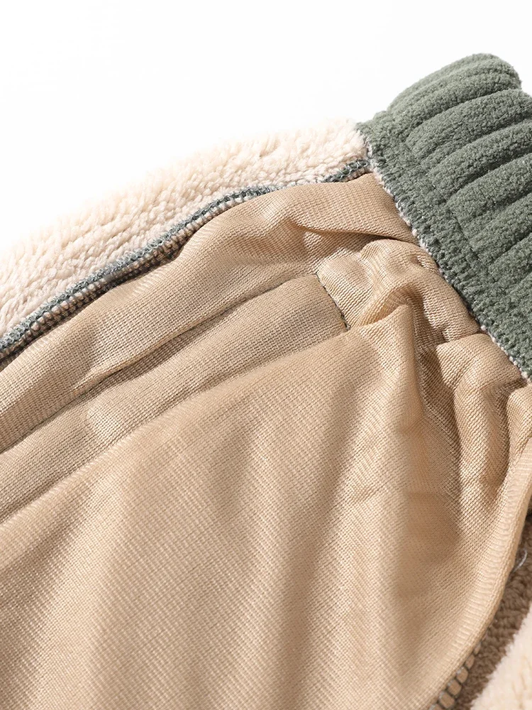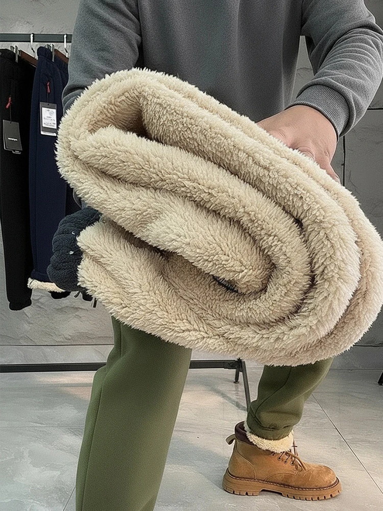 Men's Warm Fleece Lined Trousers Winter Zipper Pockets Thickened Fleece Jogger Pants Men Outdoor Snow Cold Thermal Sweatpants